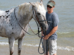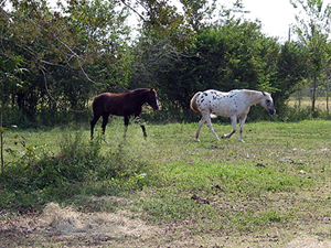Mack is a 21 year old registered Leopard Appaloosa. We have had her for over 8 years. She came from a home in Dripping Springs. Her name at the time was Guinevere and her partner in crime among the goats in her rocky pasture was Arthur, a sorrel gelding. We got her home to Bastrop and quickly realized that the name Guinevere was not really working for us, so we looked at her papers and found that her registered name was Sweet Mackey. It is so true. She is very sweet and always does her best for you. We shortened her name to Mack. Even though at 15.3 she is big and has a boy's name, she is a lady. She is the show stopper and catches everyone's eye. She is good minded and always tries to please her rider.
